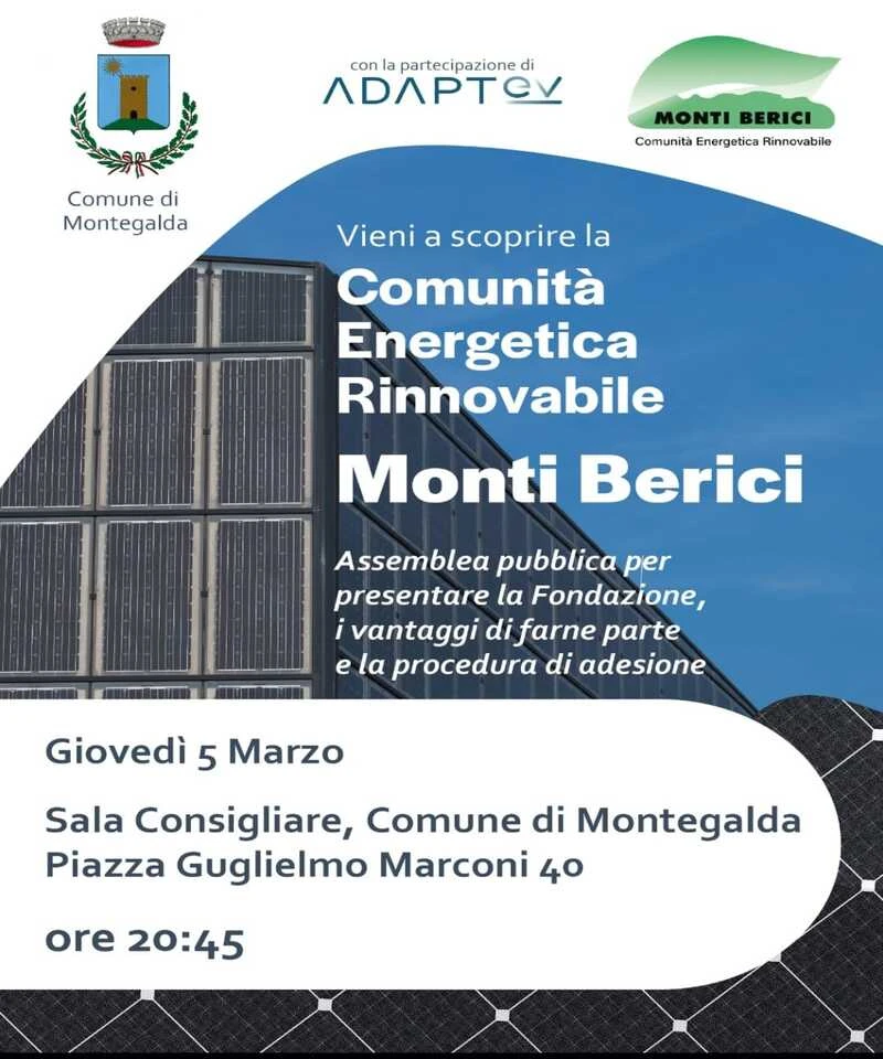 Il Comune di Montegalda entra a far parte della Fondazione Monti Berici. In occasione, si propone un incontro informativo per scoprire la Comunità Energetica Rinnovabile.