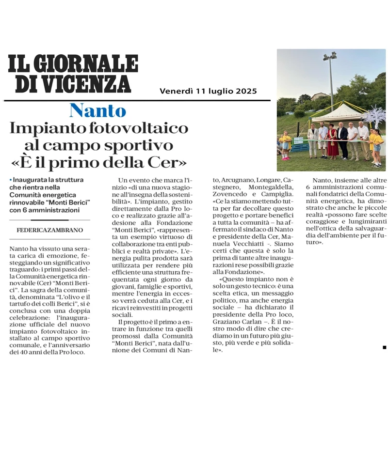 Impianto fotovoltaico al campo sportivo di Nanto